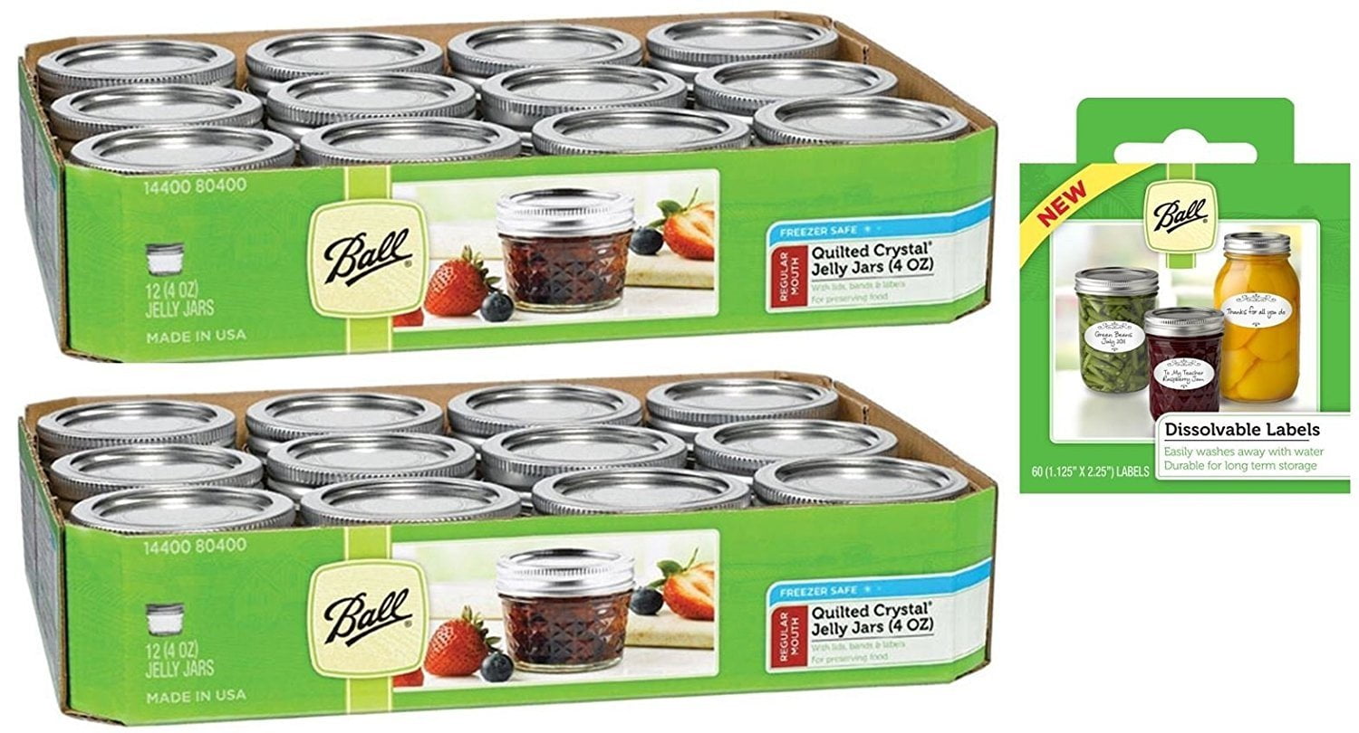 Canning Jar Bundle 3 Items = 2 Packs Ball 4-Ounce Quilted Crystal Jelly Jars with Lids and Bands ...